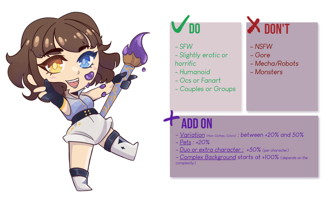 I’m open to adjusting my terms if requested before I start the commission. For example, if you’d prefer I don’t share your artwork, we can discuss it.PAYMENT